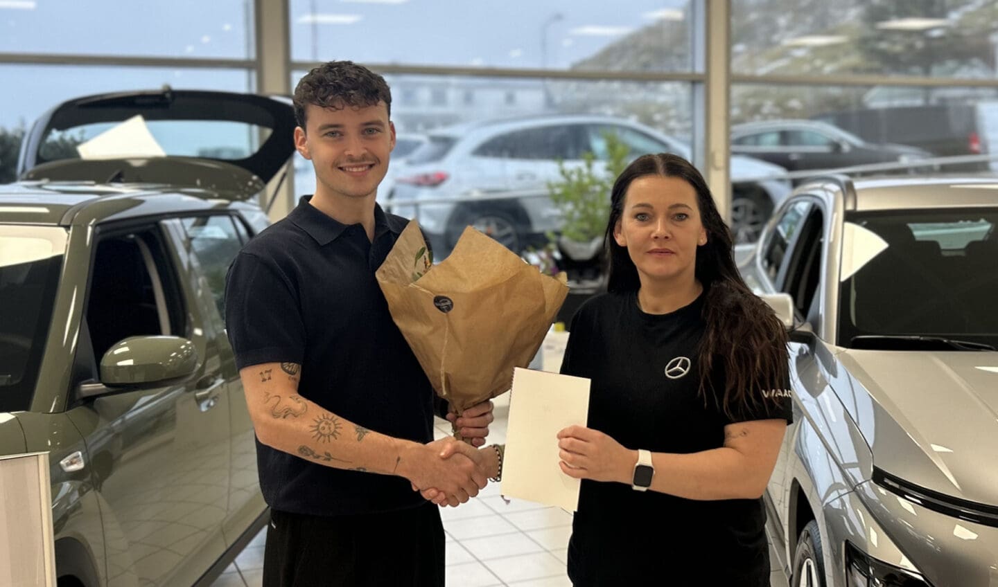 Á myndini síggjast Fríði á Borg, nýútbúgvin sølumaður, og Elin Christiansen, Deildarleiðari hjá WAAG.